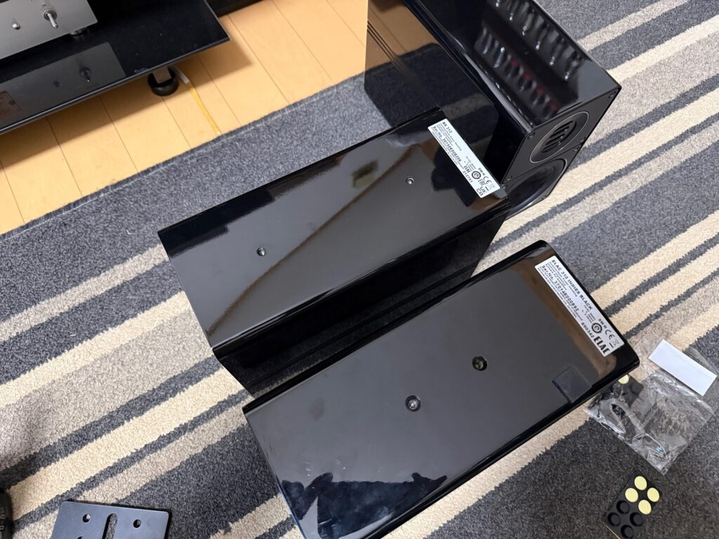 300シリーズを壁掛けする場合、通常のブックシェルフスピーカーとしては長さがかなりあるので、壁からスピーカーの中心部までの距離が調整できるスタンドを使う必要があります。