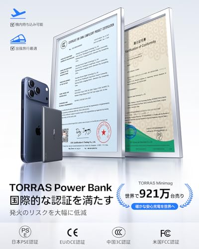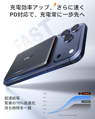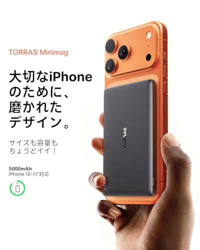 そこで見つけたのが、TORRASのモバイルバッテリー。iPhoneのMagSafeを利用して、背面に磁石の力でピタッと貼り付けることが可能なのです。