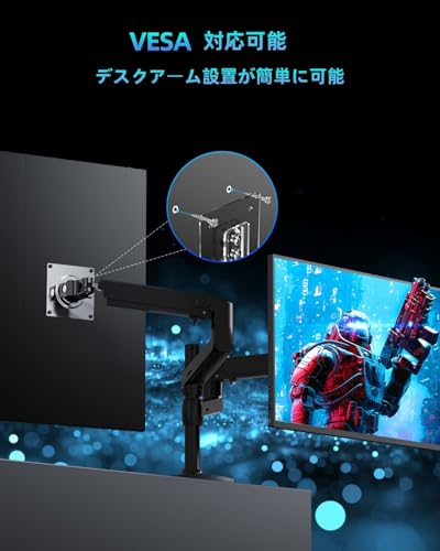 75mmのVESAマウントに対応していますので、モニターアームに簡単に取りつけ可能です。