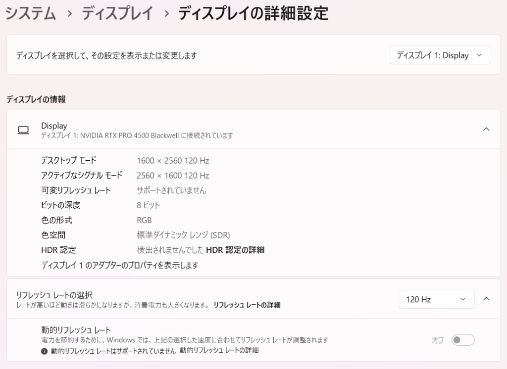 先日、16インチの2560×1600解像度のモバイルモニターを購入したのですが、等倍(ドットバイドット)で表示させると少し文字が小さく、125%だとちょうど良い感じでした。