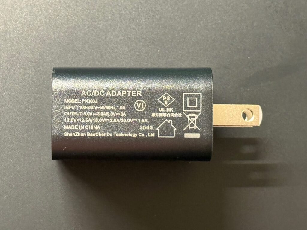 USB-Cタイプの5V 3A~20V 1.5Aまでに対応する、30Wのアダプタが附属します。