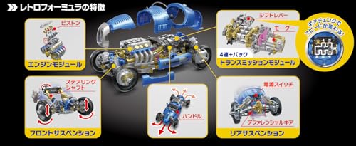車を構成する、マニュアルトランスミッション、ディファレンシャルギア、サスペンション、ステアリングシステムなどの基本的な構造を理解するのにめちゃくちゃわかりやすいのが、エレキットのレトロフォーミュラ MR-9137です。