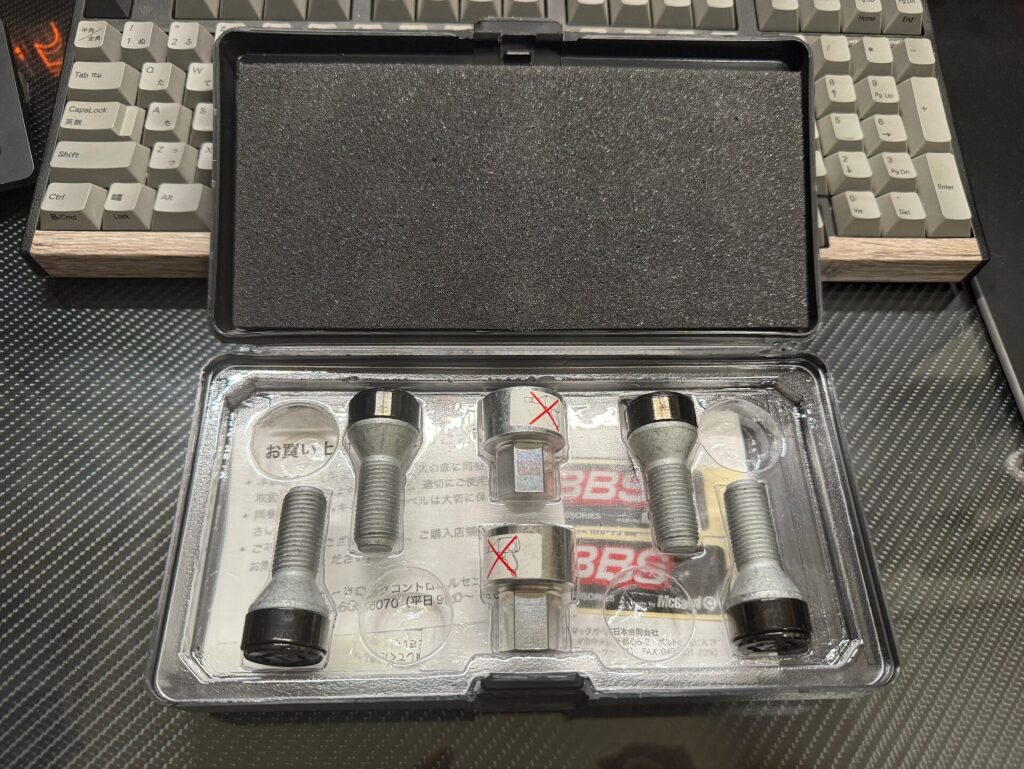 そこそこ高価なホイールなので、盗難防止用にロックボルトも購入しました。